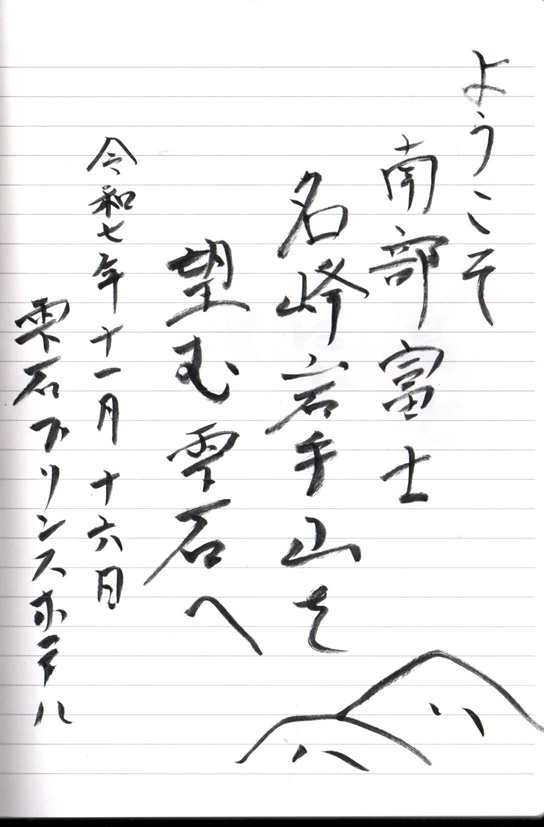 宿泊記念帳-252(令和7年11月16日)雫石高倉温泉「雫石プリンスホテル」