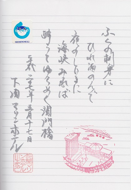 宿泊記念帳-82(平成27年5月17日)「下関マリンホテル」