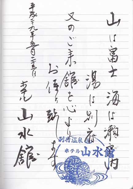 宿泊記念帳-128(平成29年5月23日)別府温泉「ホテル山水館」