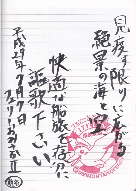 宿泊記念帳-130(平成29年7月7日)名門大洋フェリー「フェリーおおさかU」