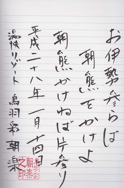 宿泊記念帳-94(平成28年1月14日)湯快リゾート「鳥羽彩朝楽」
