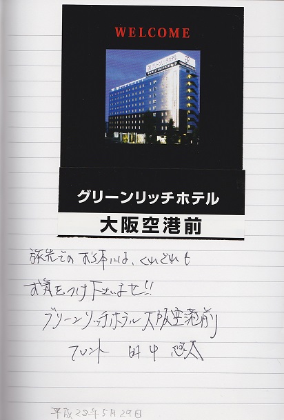 宿泊記念帳-103(平成28年5月29日)「グリーンリッチホテル伊丹空港前」