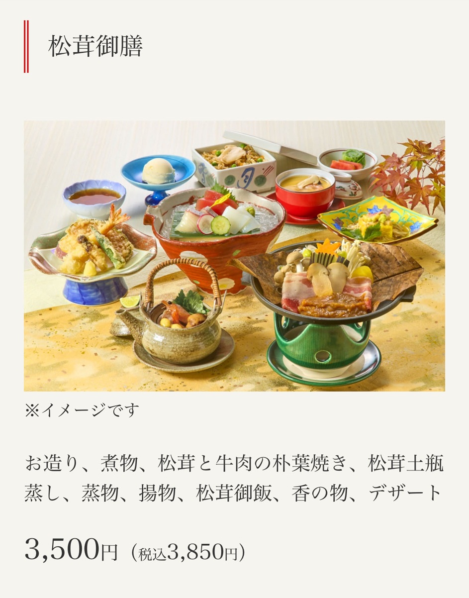 ーーーーーーーーーー 20日「木曽路」松茸御膳 ーーーーーーーーーー