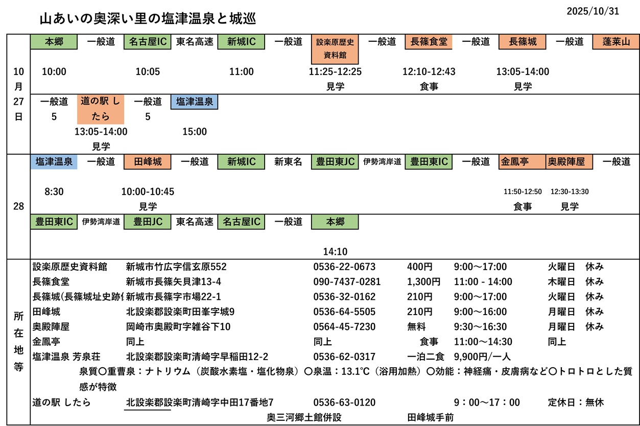 ![]() 行程と施設情報 ☆画像クリックで拡大 |