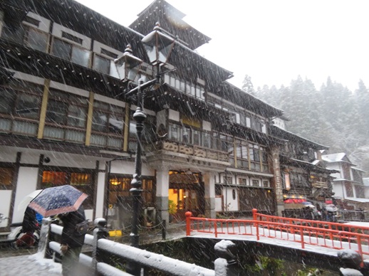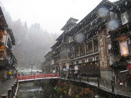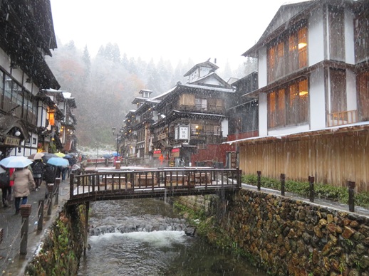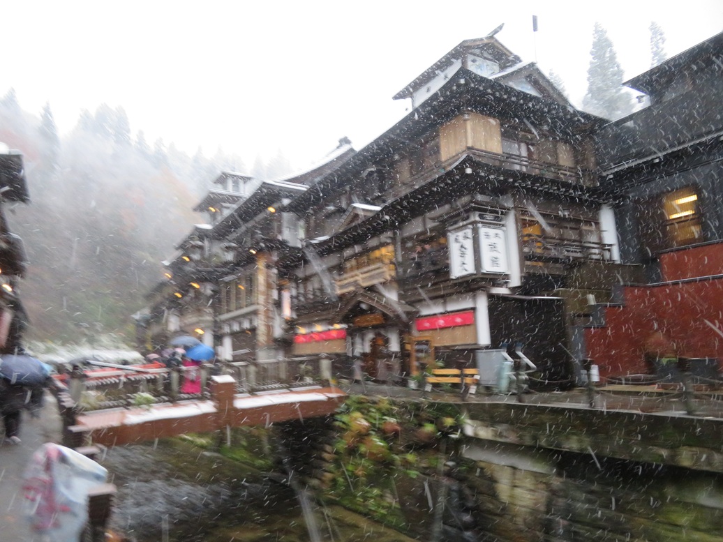 角館落葉と出逢う樺(かば)根付 初時雨奥入瀬渓(たに)をバスの中 初冬の薄荷峠の白き森 小雪の十和田湖宿の熱き汁 雪の中銀山温泉静もりぬ |