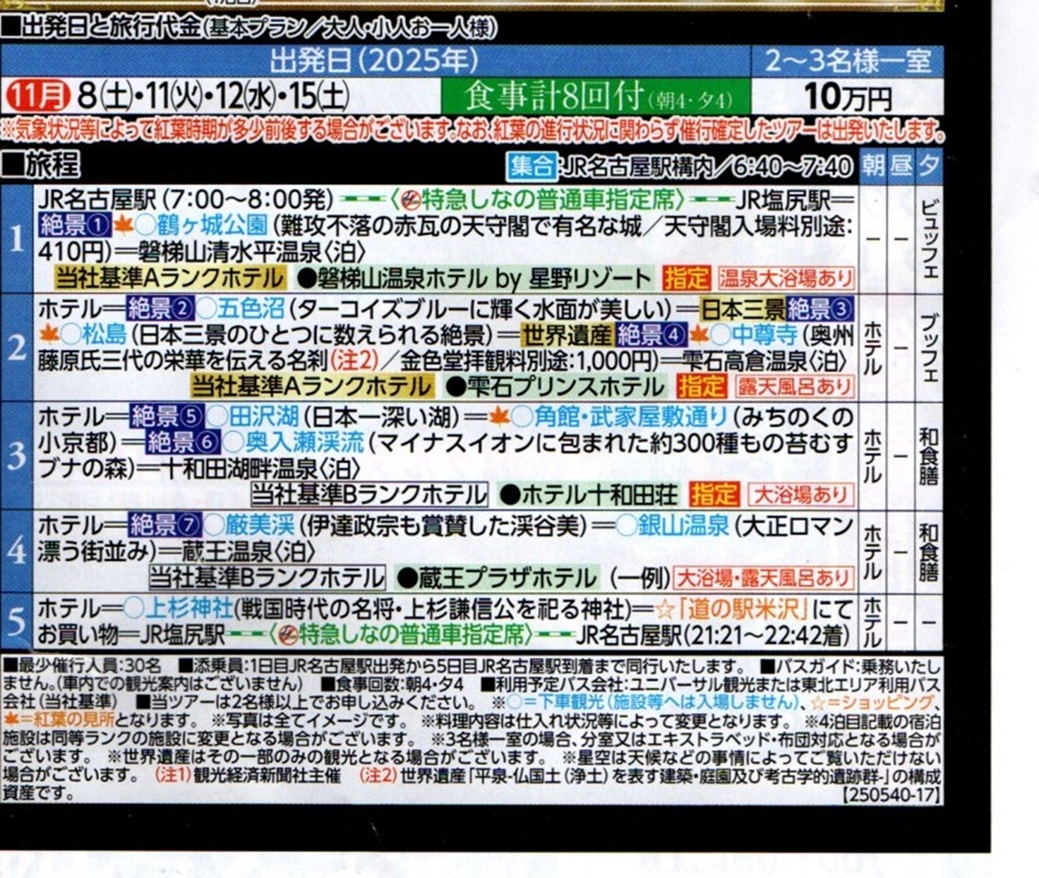 ![]() 詳細日程1 ☆画像クリックで拡大 |