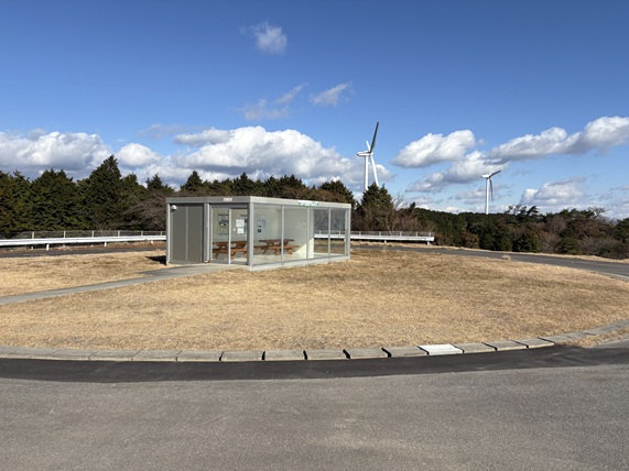![]() 青山高原高台直下の大風車は休憩所に |