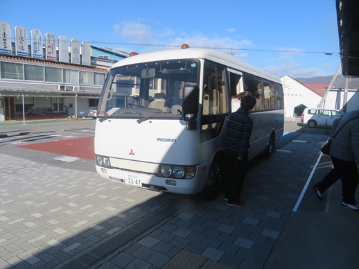 ![]() 戸倉駅にホテルのバスのお迎え |